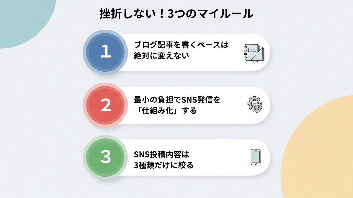 ブログとSNS連携の3つのマイルール 無理なく続ける方法の図解