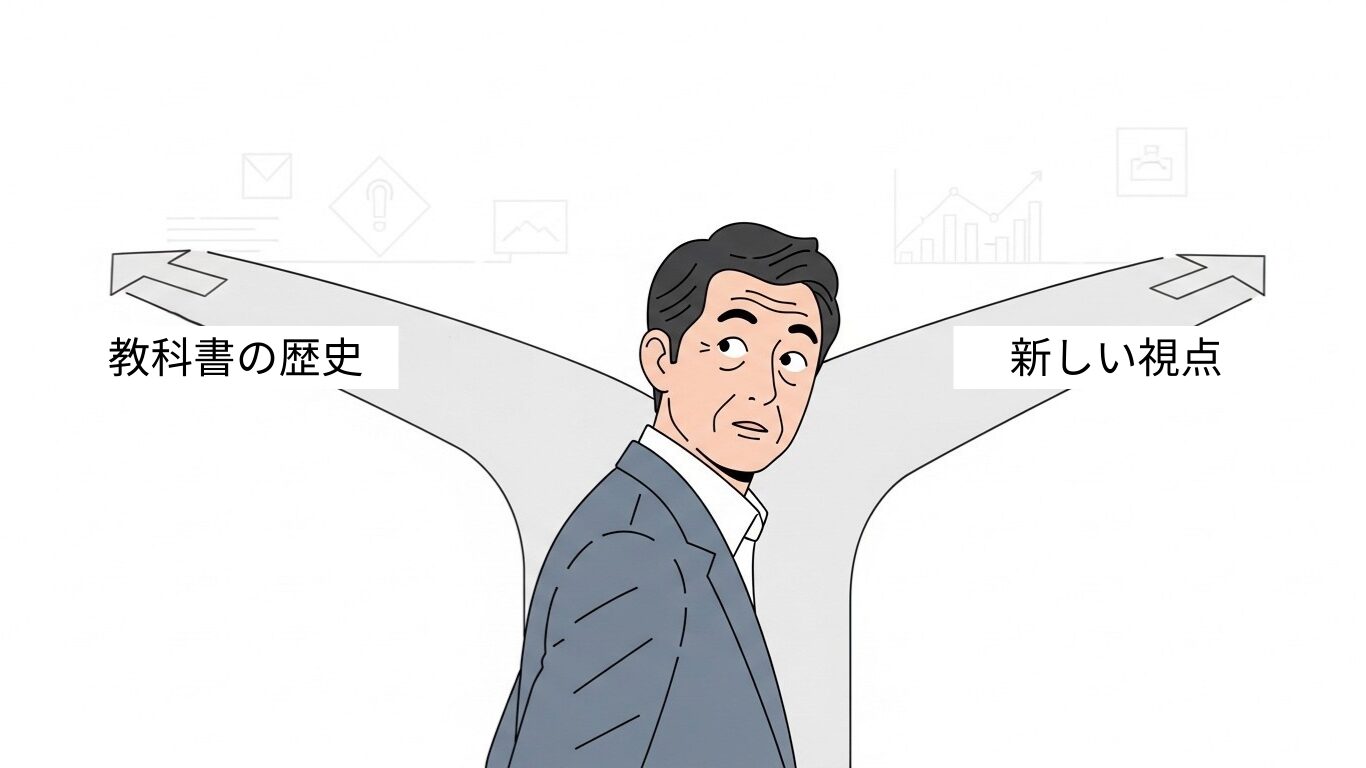 しかし教科書は、限られた紙面で複雑な歴史をわかりやすくまとめる必要があります。その結果、本来は入り組んだ流れが単純化され、私たちはその「単純化された正解」を何十年もアップデートせずに持ち続けてしまいます。